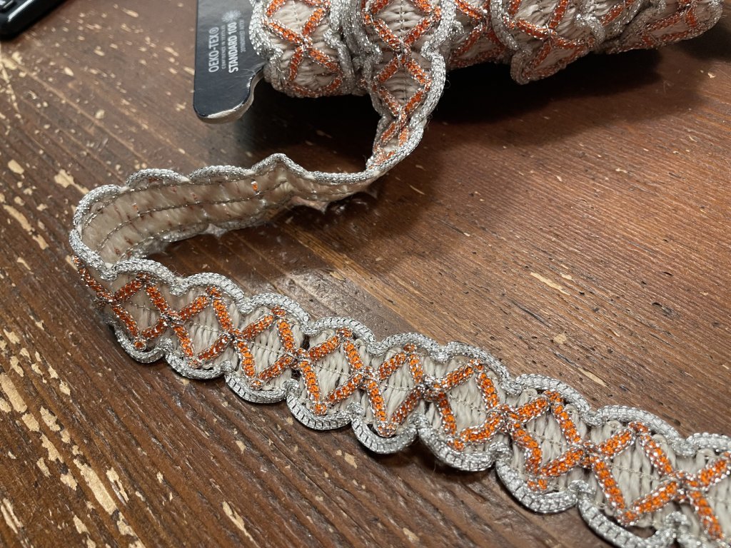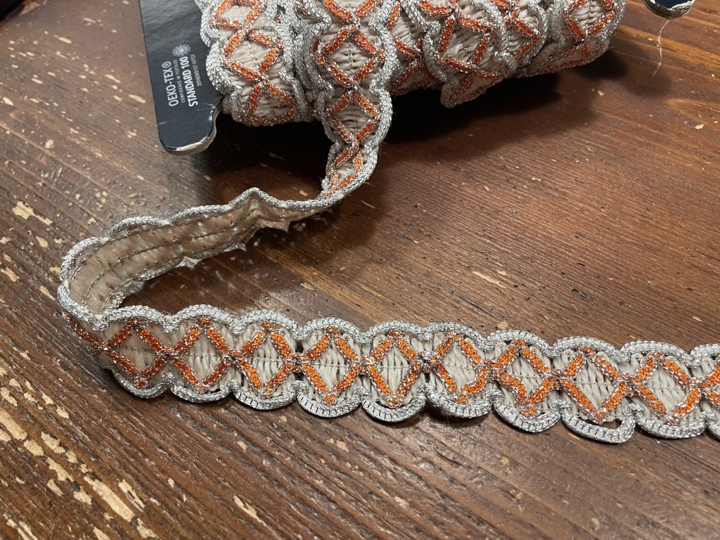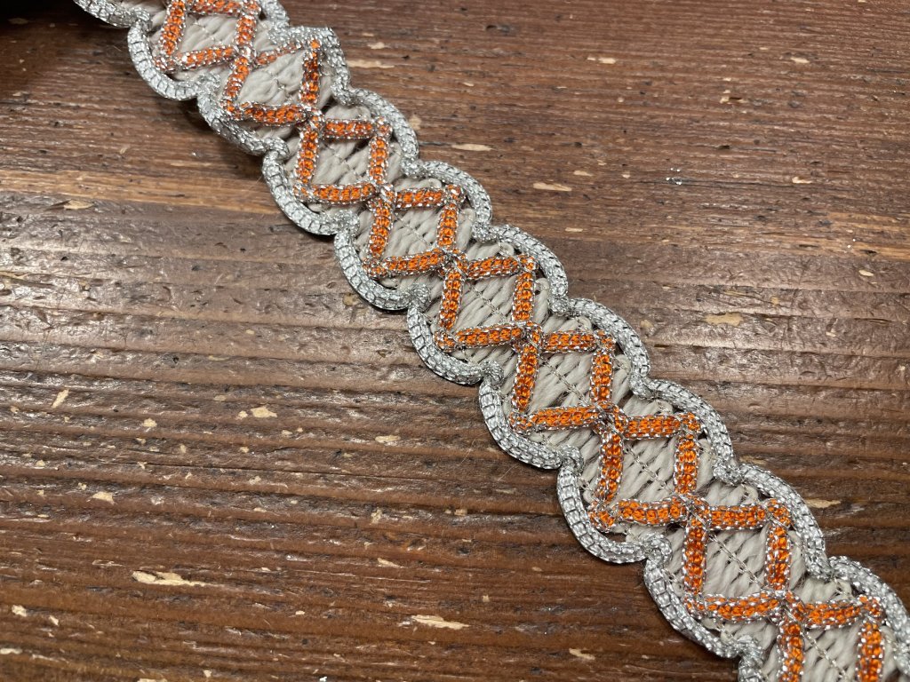 Oranžovo-stříbrný prýmek z kolekci Dorures Louis Mathieu, 3cm