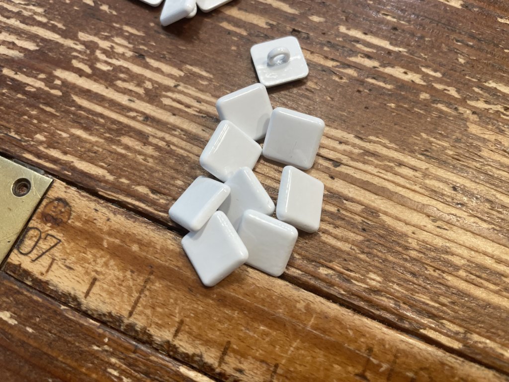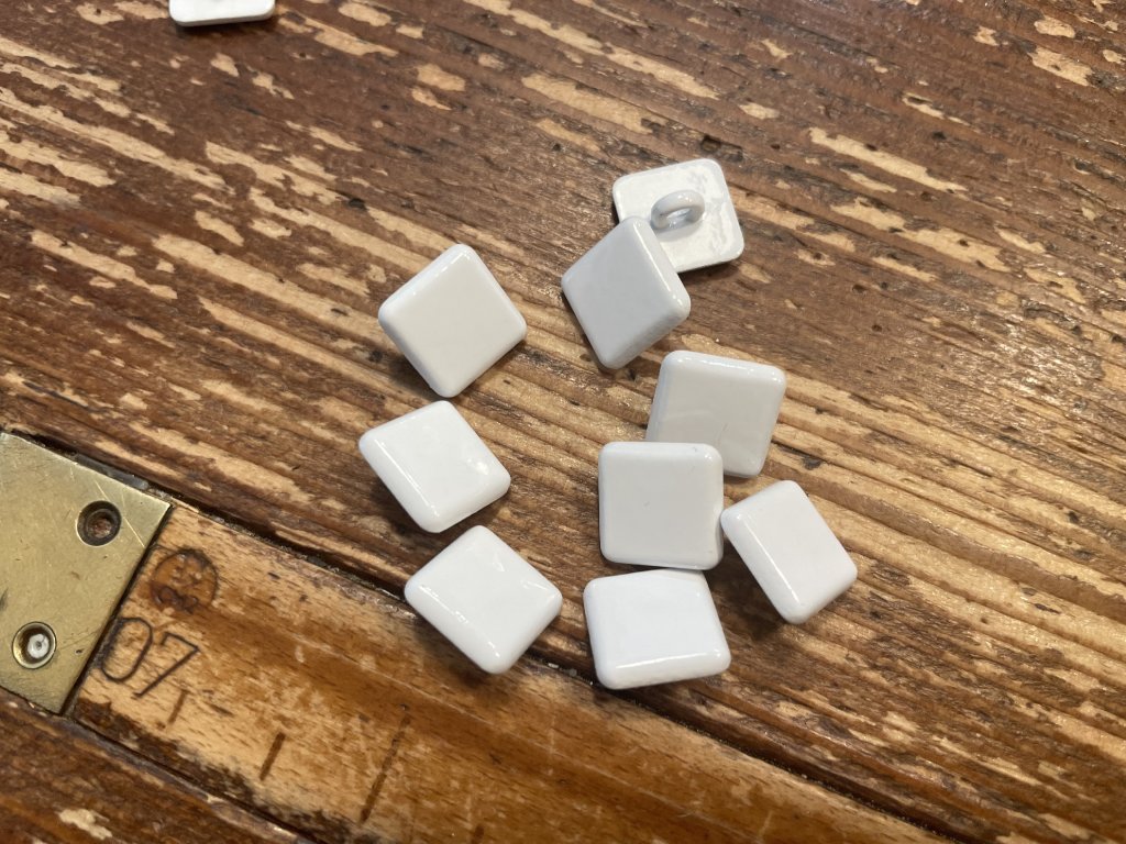 Bílý hranatý kovový knoflík 12mm
