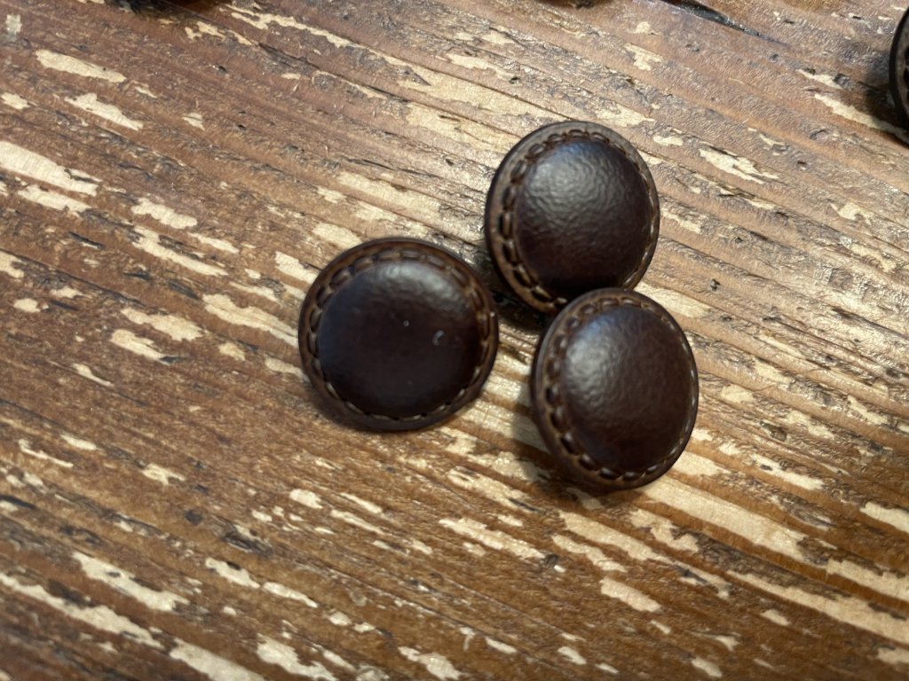 Hnědý knoflík v imitaci kůže 15mm , 20,4mm. 22mm