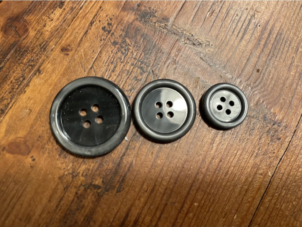Lesklý šedý knoflík 14mm , 19mm , 24,2mm