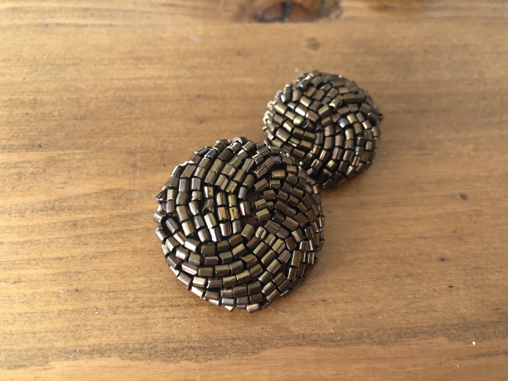 Světle růžový knoflík s bronzovými kamínky, 30mm