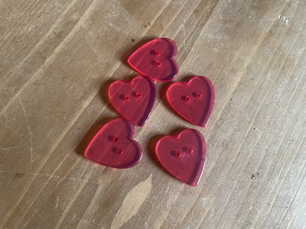 Růžový knoflík ve tvaru srdce, 2,5cm