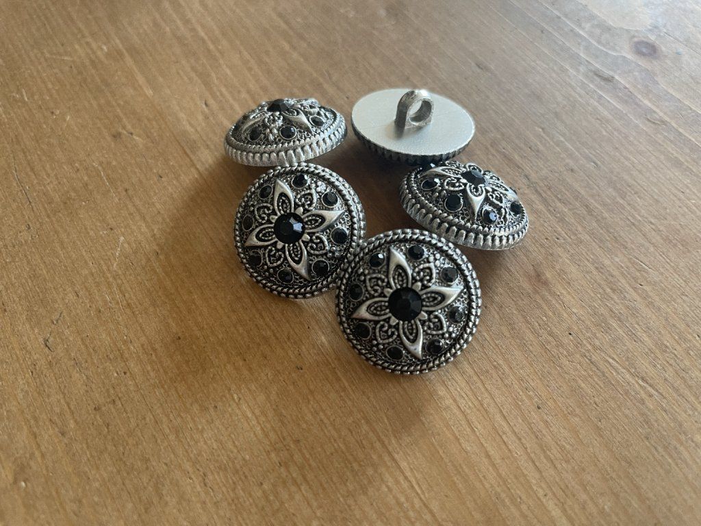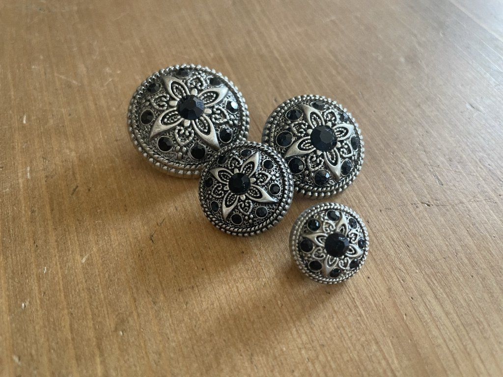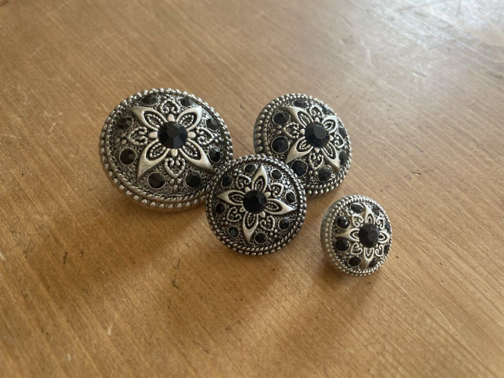 Starostříbrný plastový knoflík s kamínkami , 4 velikosti