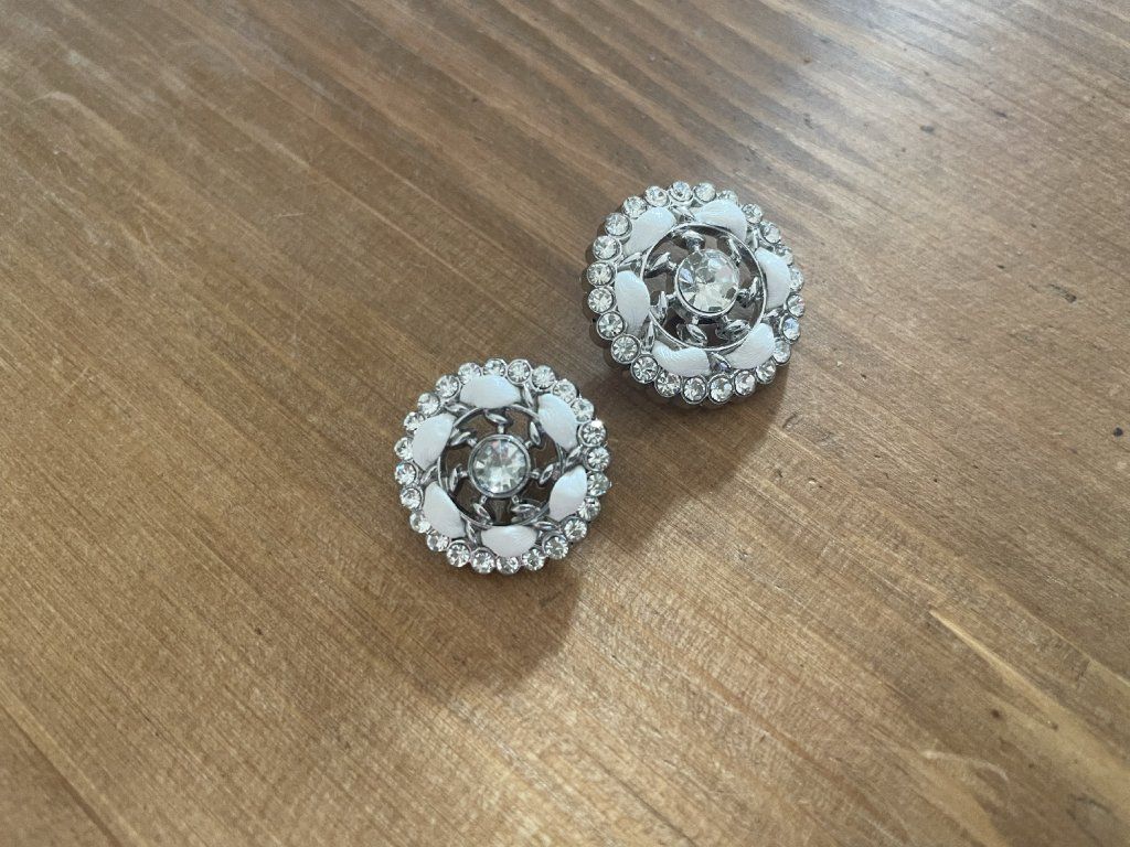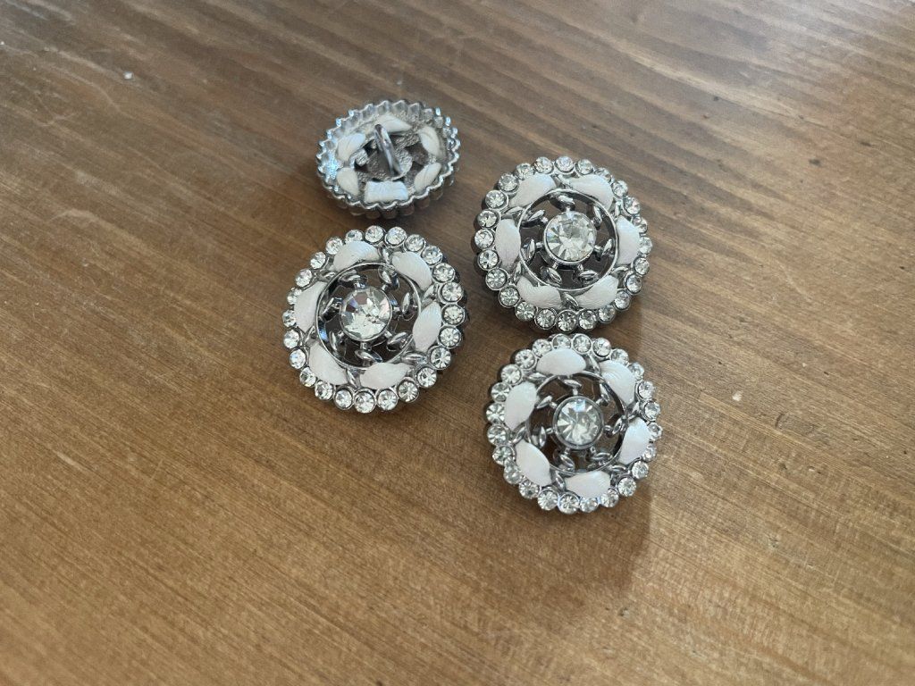 Stříbrný knoflík s bílou stuhou ve stylu Chanel