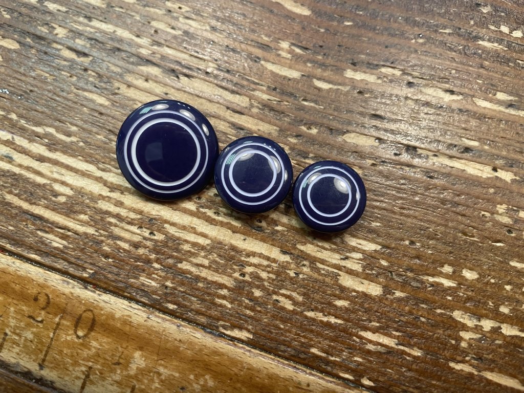 Tmavě modro bílý knoflík 21,6mm , 16,5mm , 15,3mm