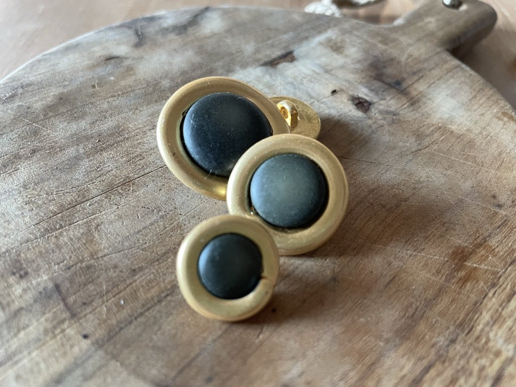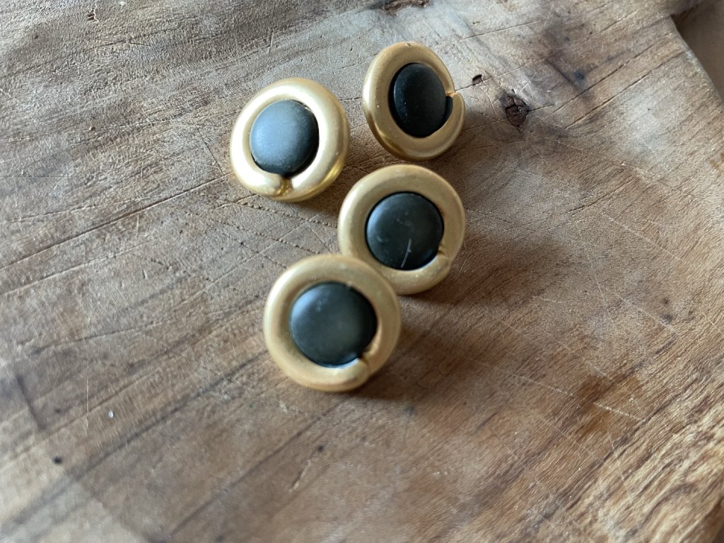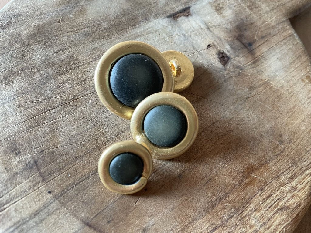 Zlatý kovový knoflík s tmavě khaki středem, vintage