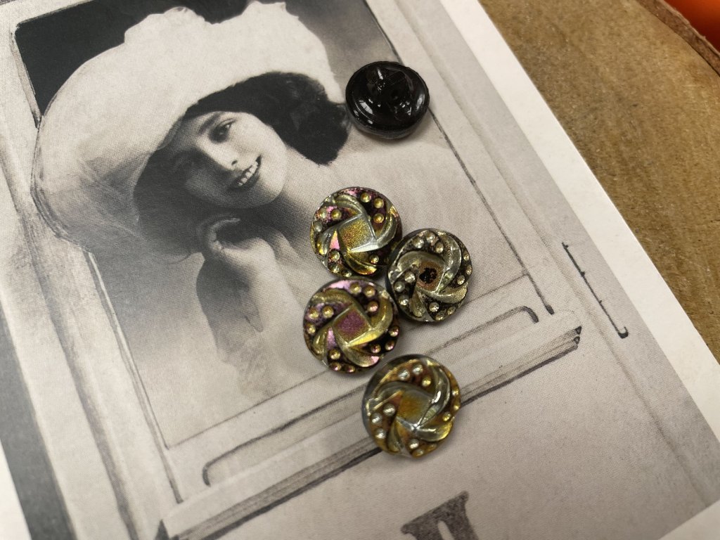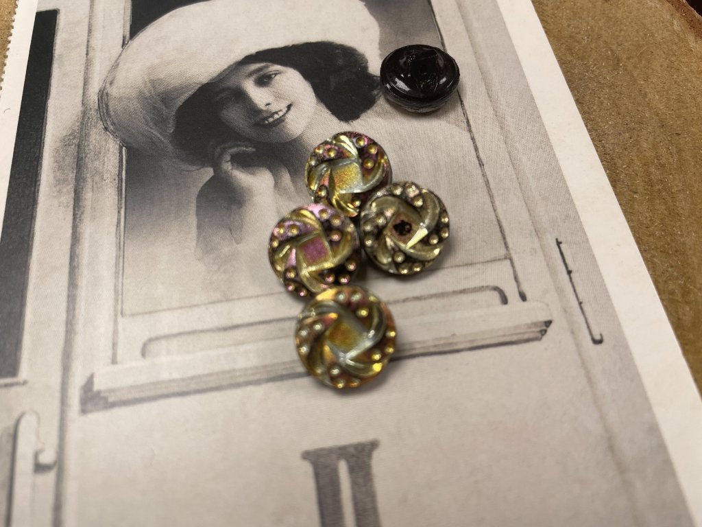 Zlatý skleněný knoflík s růžovým odleskem, 16mm