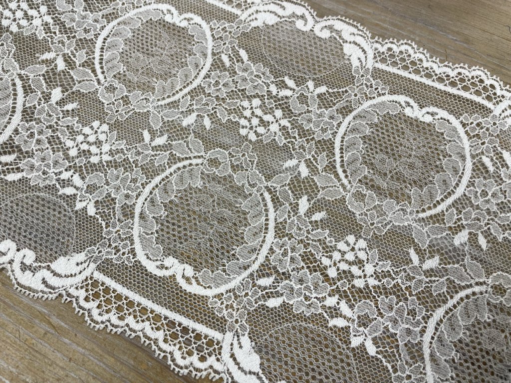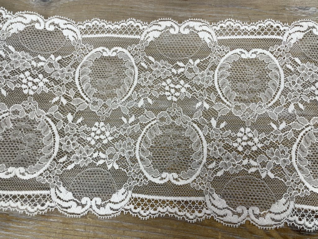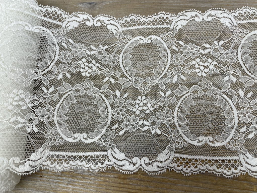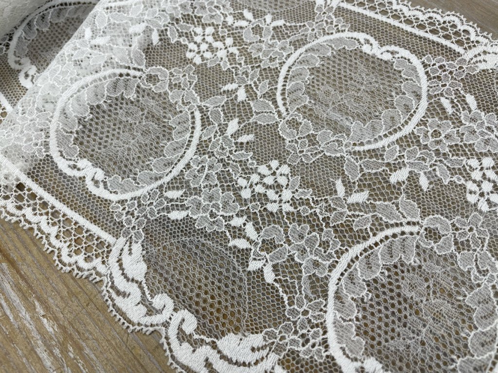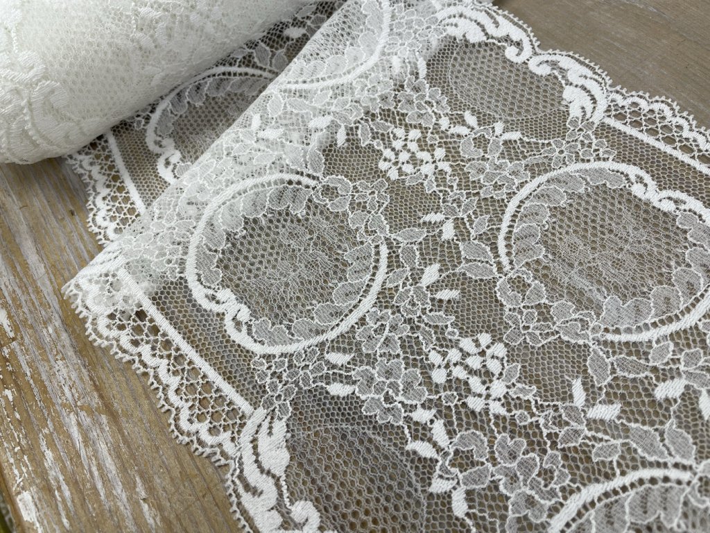 Bílá pružná krajka ve stylu Dior, 18cm