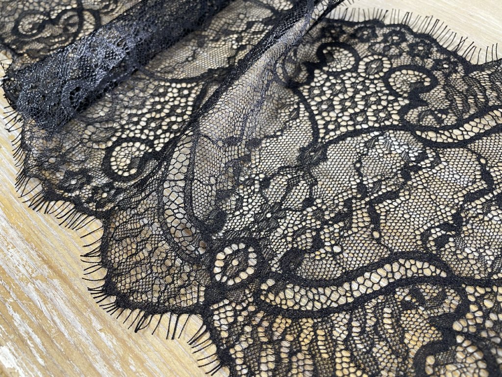 Černá francouzská krajka, 18,5cm x 1,7m (cena za kus)