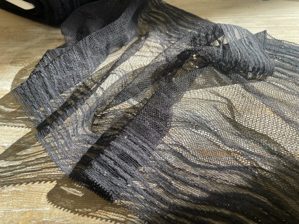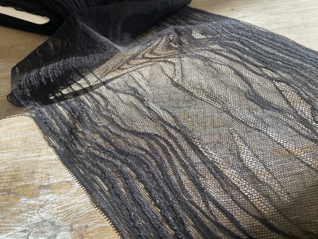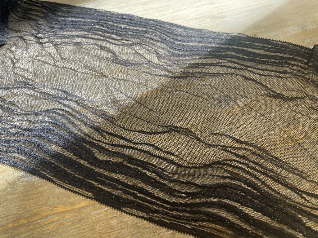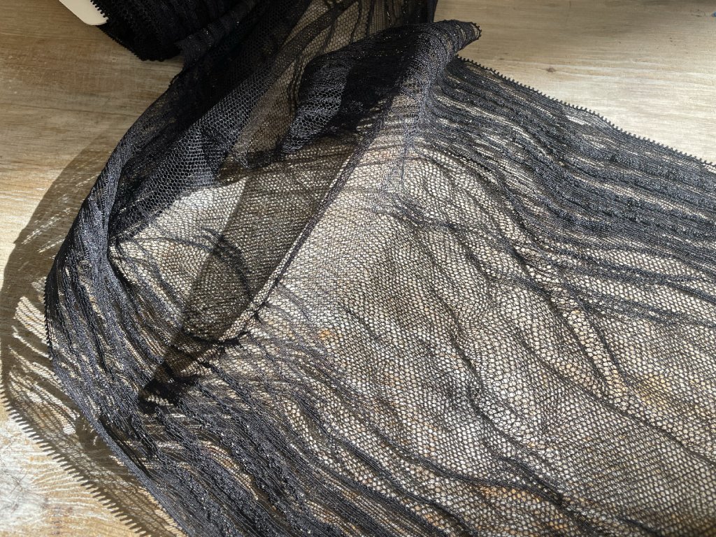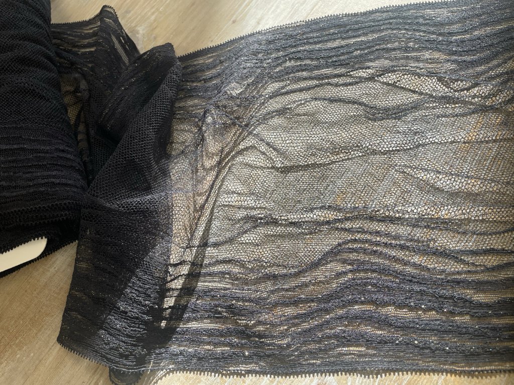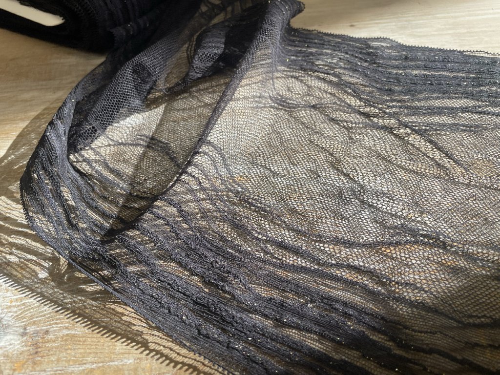 Černá tylová elastická krajka s lurexem, 23,5cm