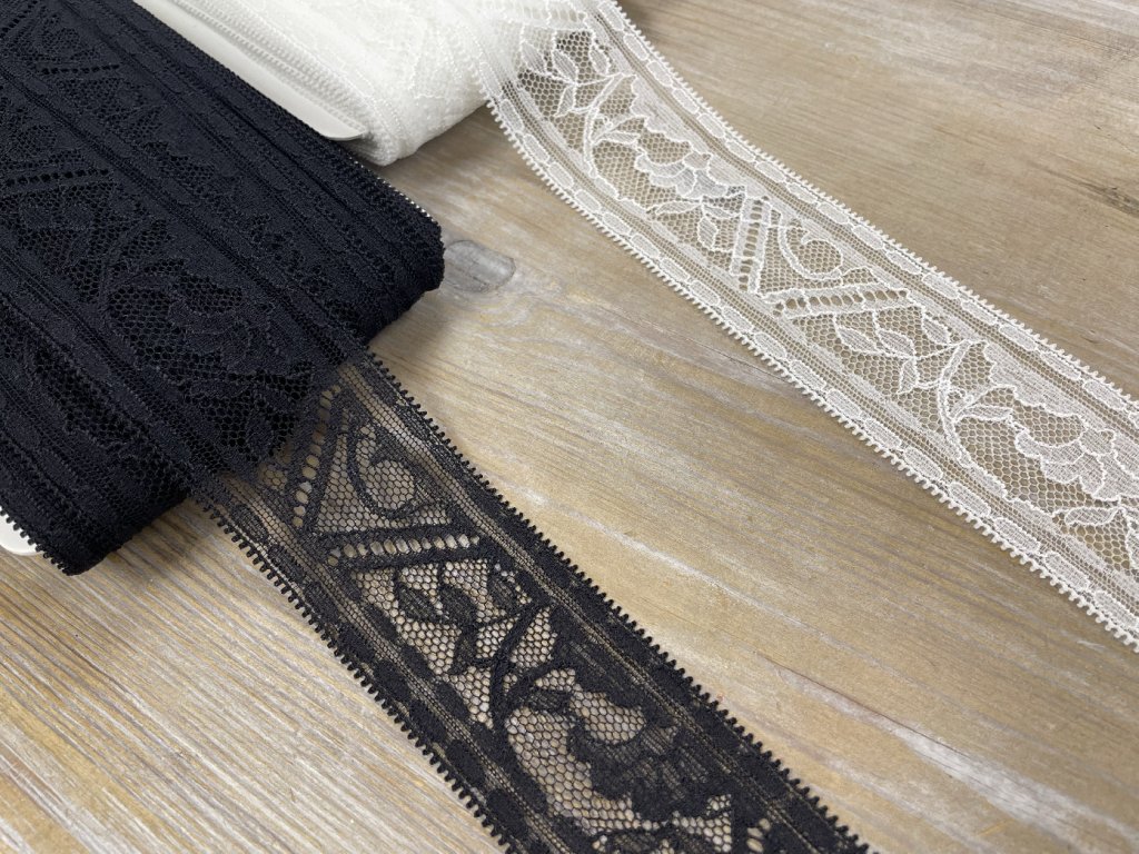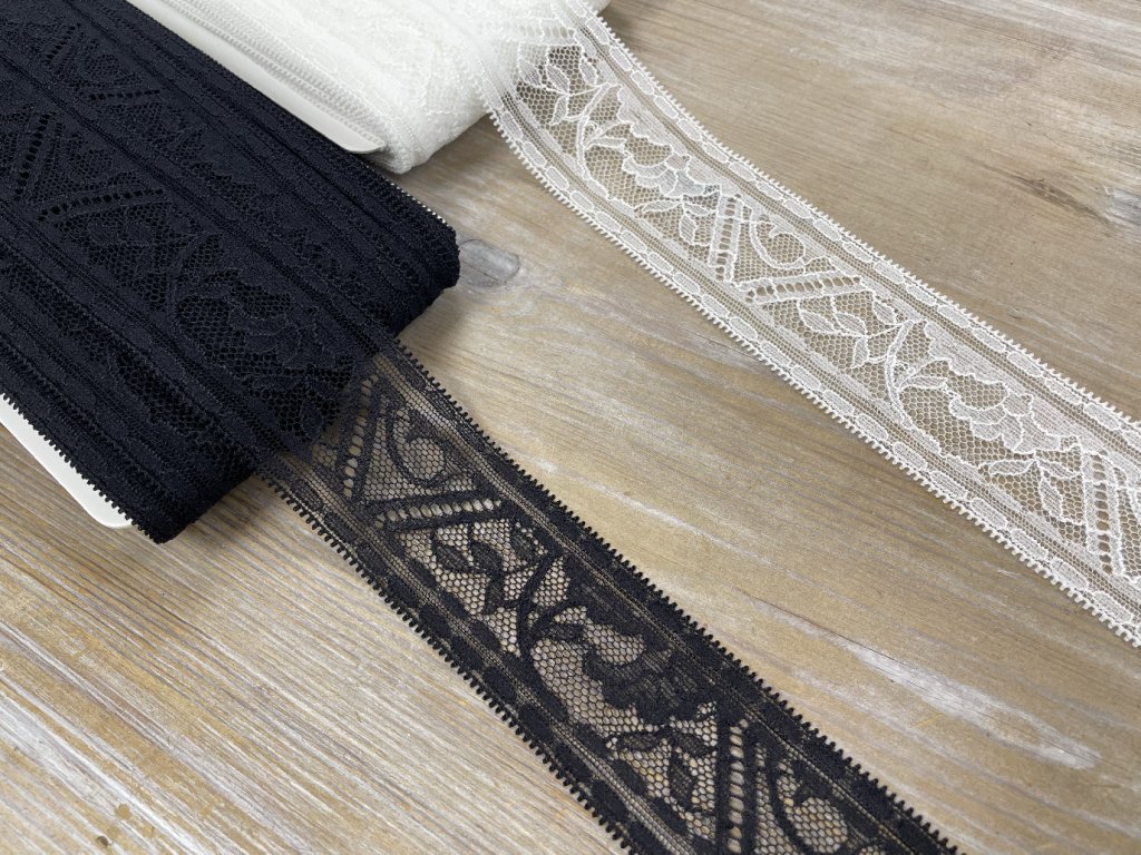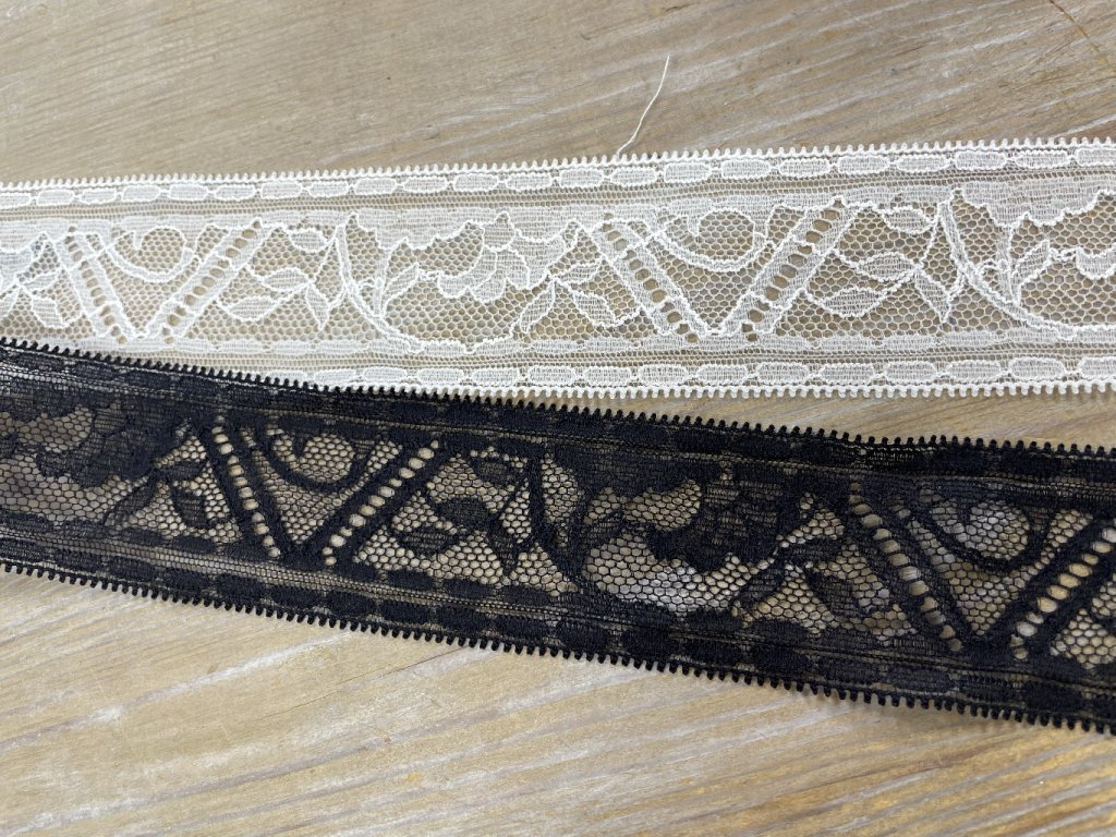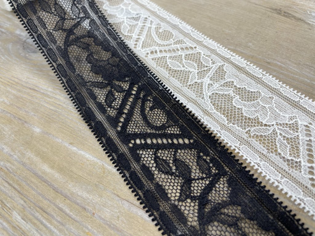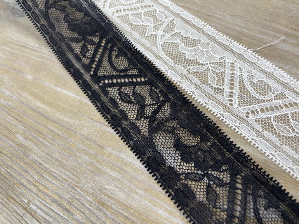 Geometrická krajka v černé a bílé barvách, 4,2cm