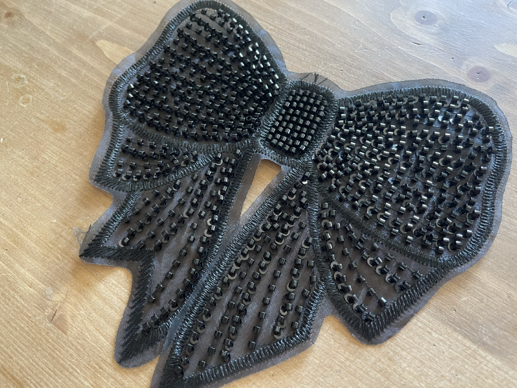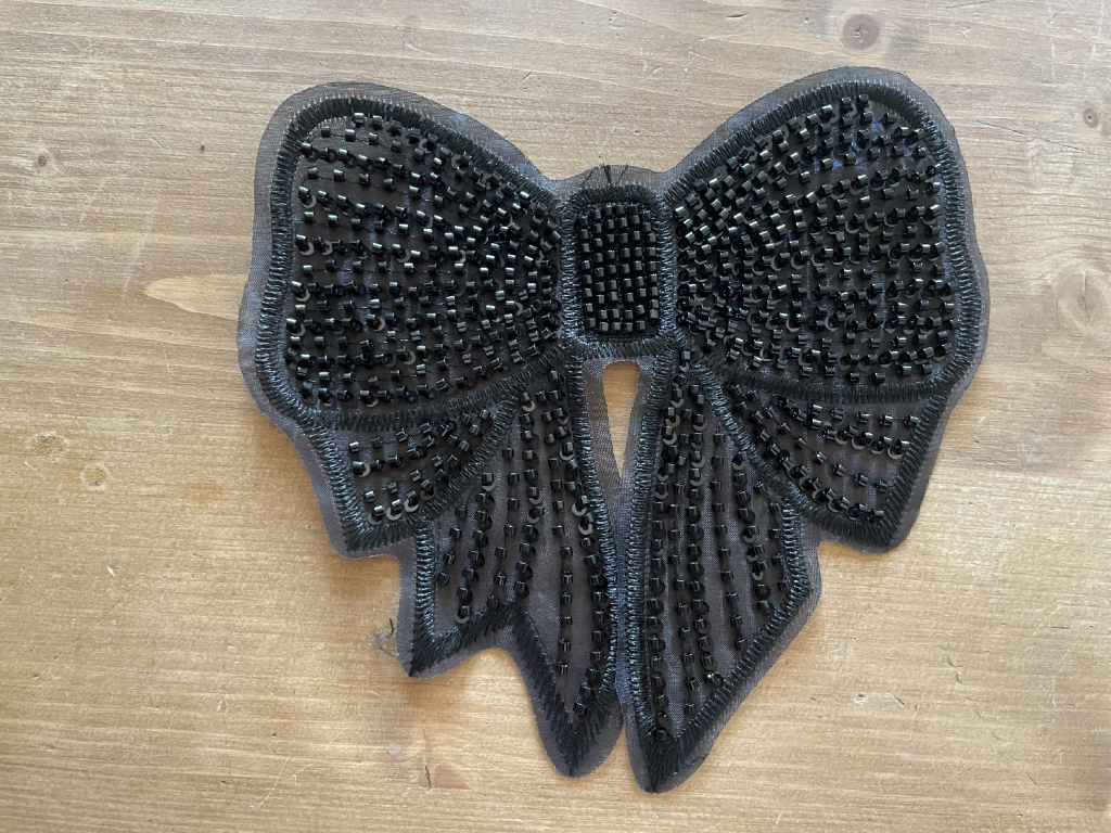 Našívací aplikace ve tvaru mašle s korálky, 15cm x 15cm
