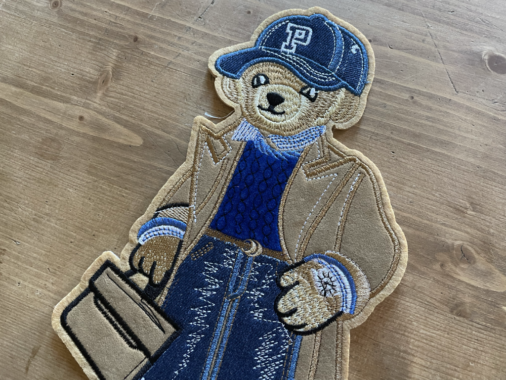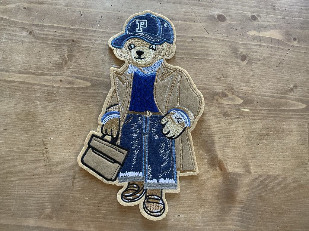 Našívací aplikace ve tvaru medvídka v kšiltovce, 15cm x 26cm