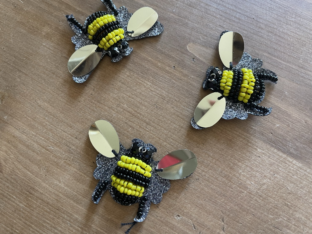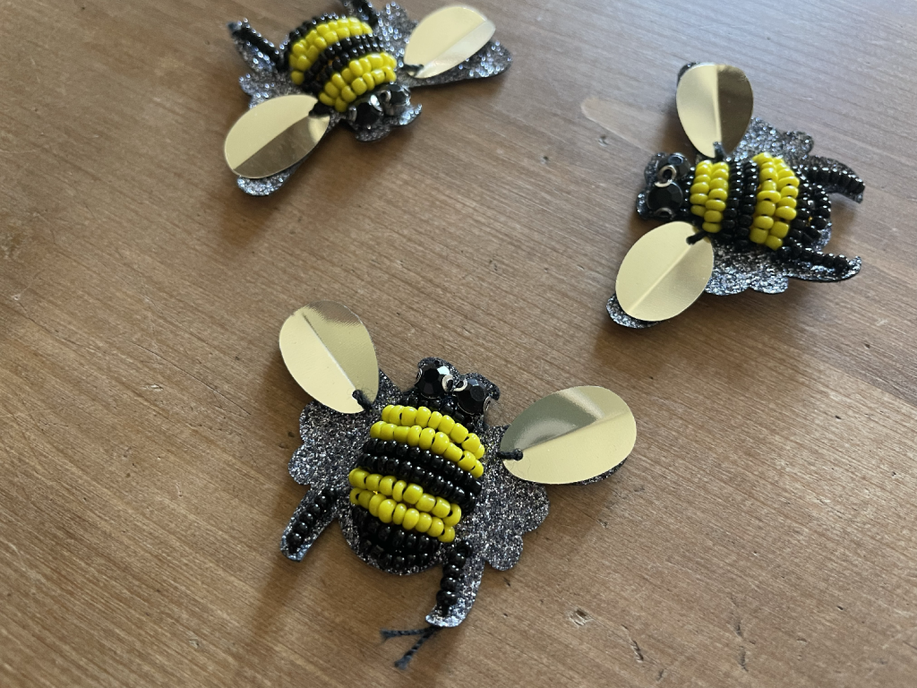 Korálková aplikace ve tvaru včelky, 3,5cm x 5cm