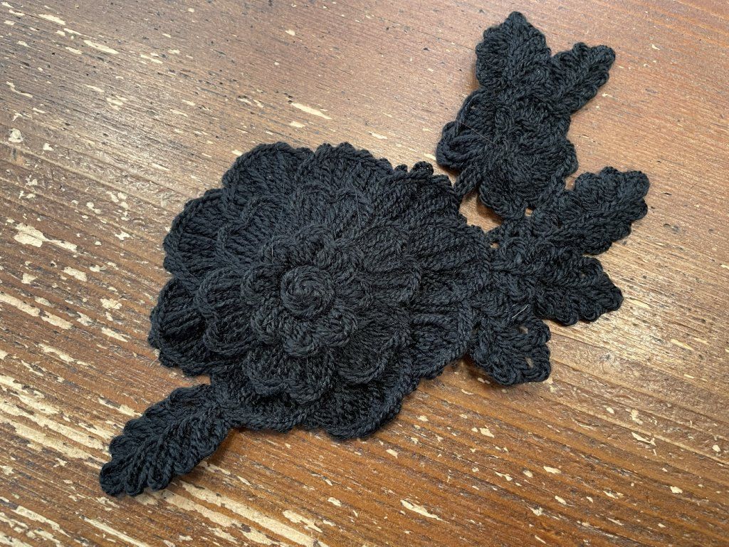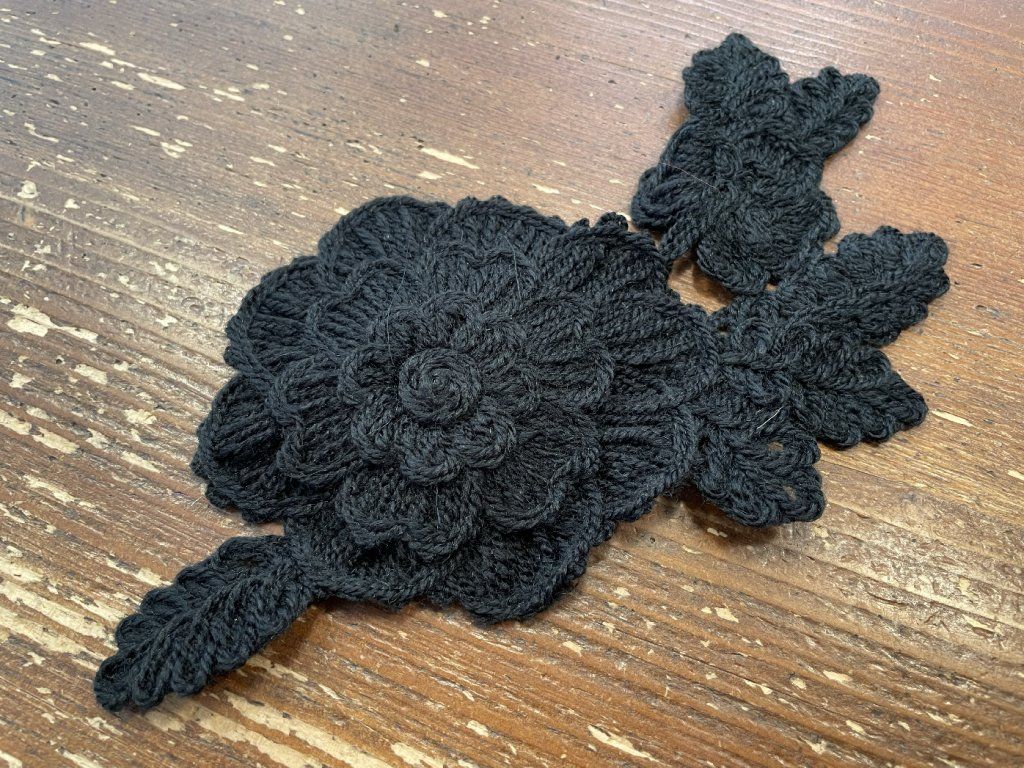 Našívací černá "háčkovaná" aplikace, 23cm x 12cm