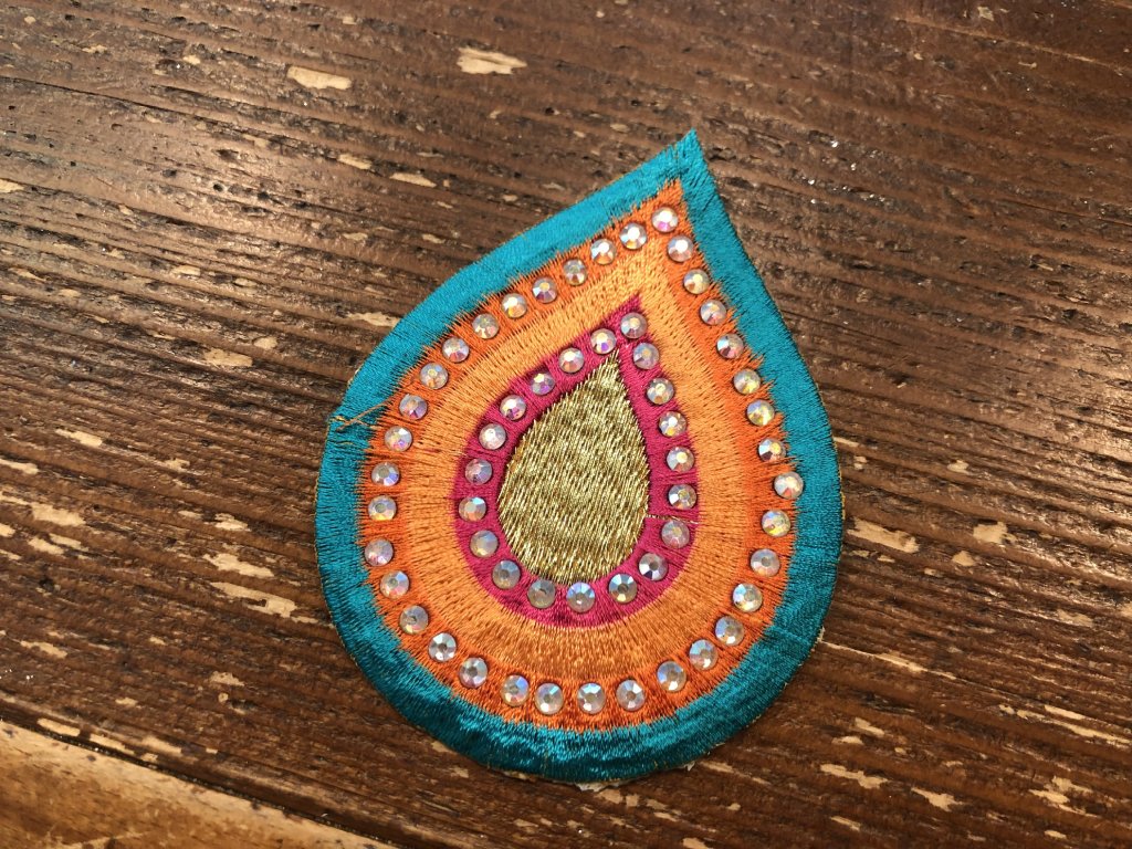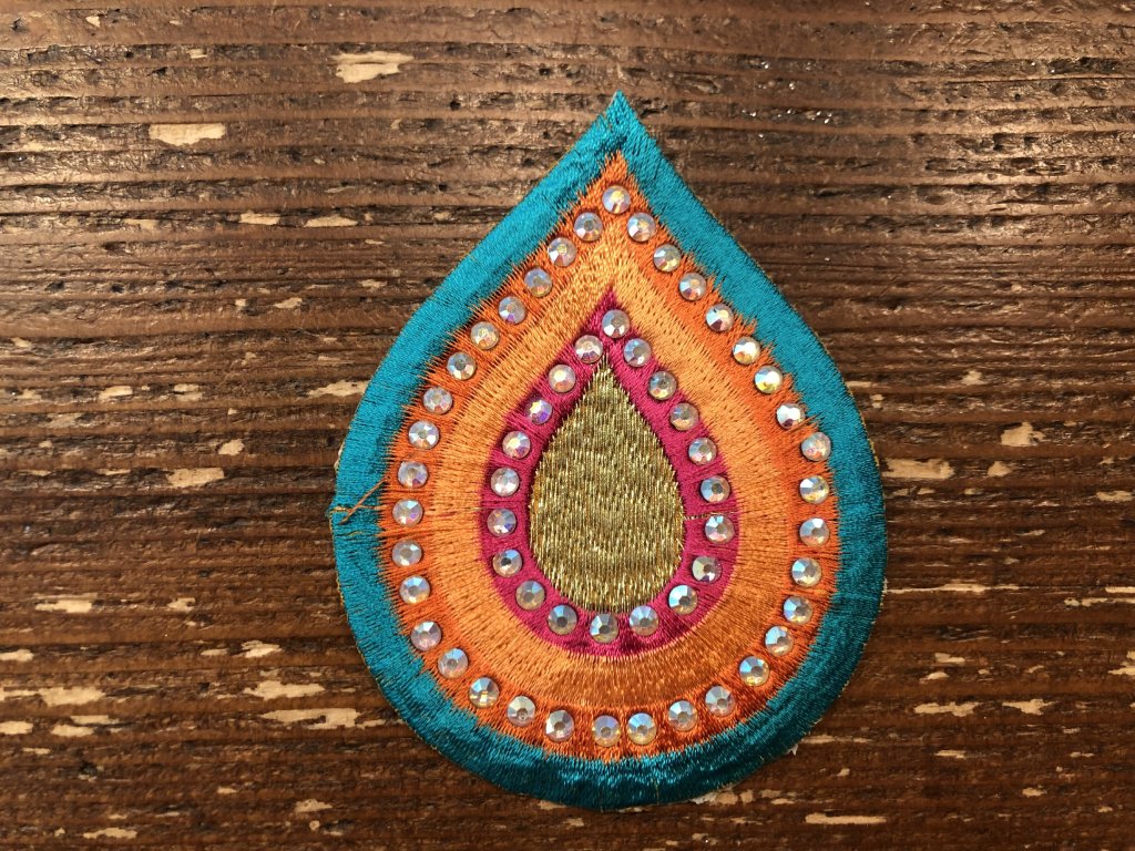 nažehlovací aplikace ve tvaru pavího peří s kamínky