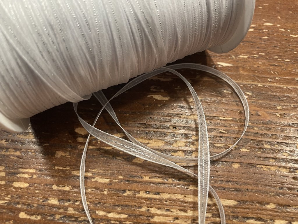 Bílá organzová stuha se stříbrným proužkem, 3mm