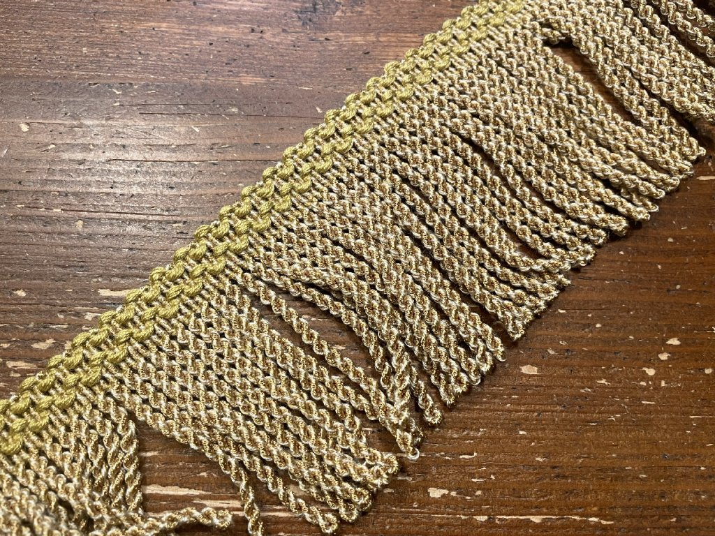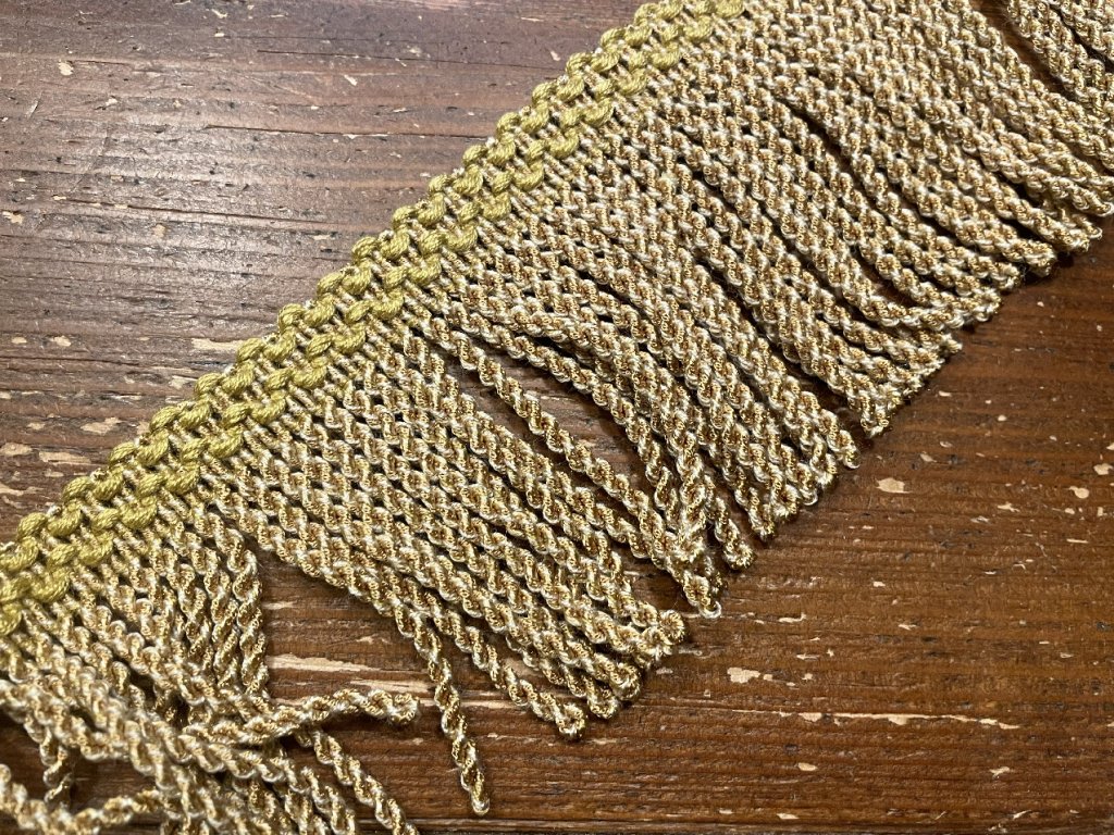 Lehce žíhané benátské třásně v zlatavé barvě, 7cm