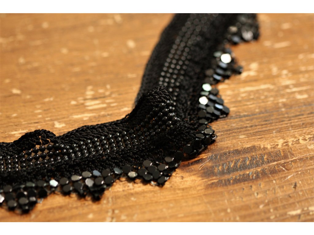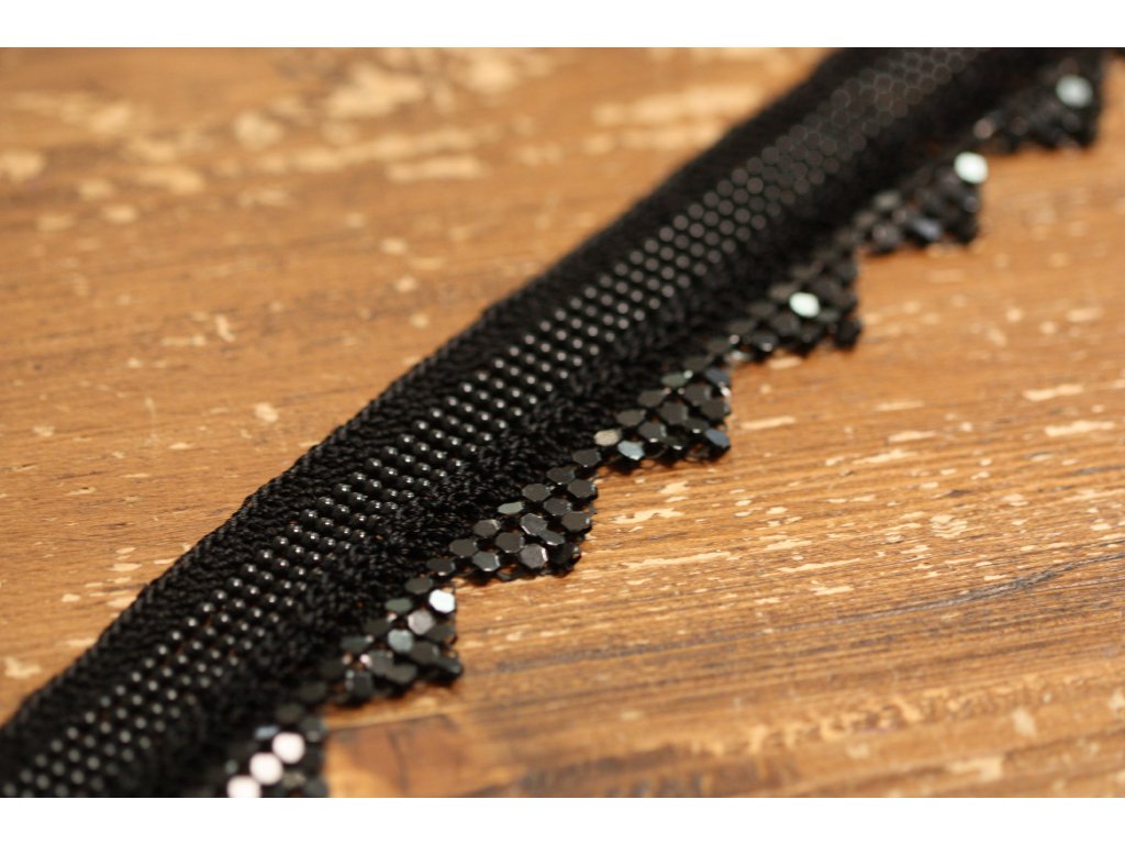 Háčkovaná bordura s kovovou ozdobou a la Chanel v černé barvě