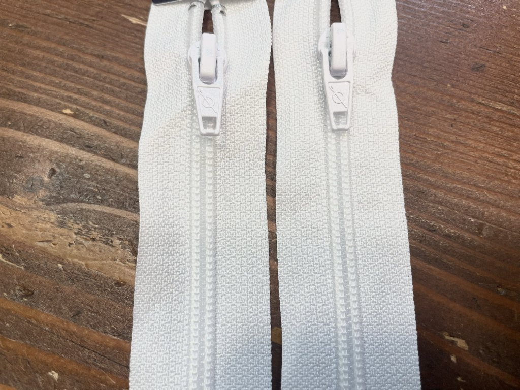 Bílý dělitelný spirálový zip, 50cm, 55cm, 60cm, 65cm