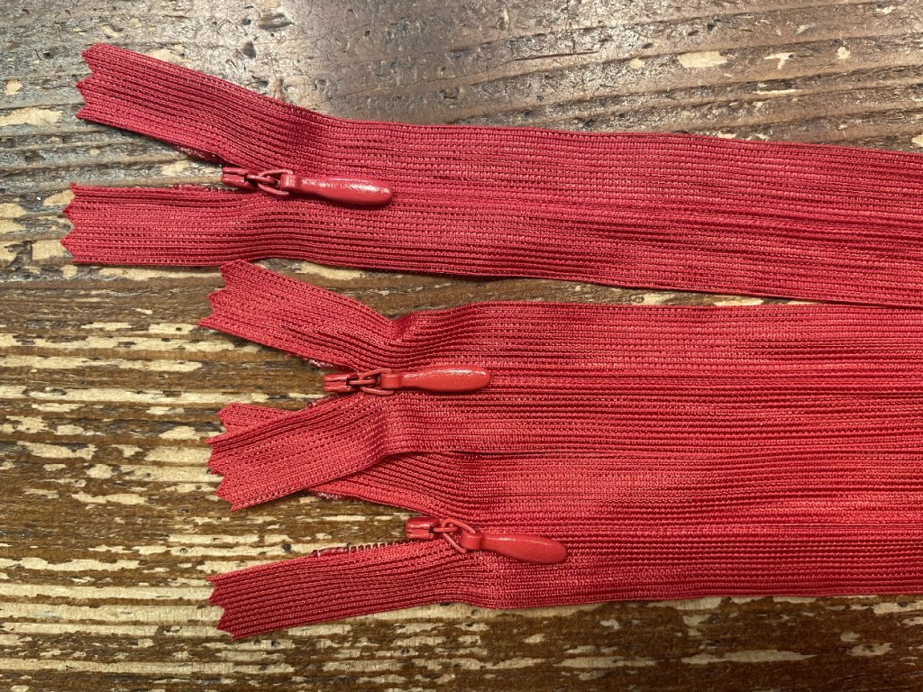 Skrytý zip v červené barvě 22cm, 35cm, 50cm, 60cm