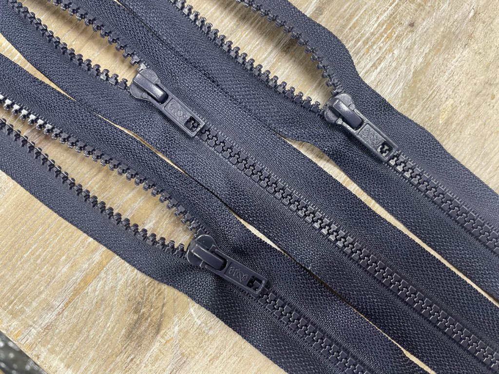 Tmavě modrý dělitelný kostěný zip 50cm, 55cm, 60cm, 65cm