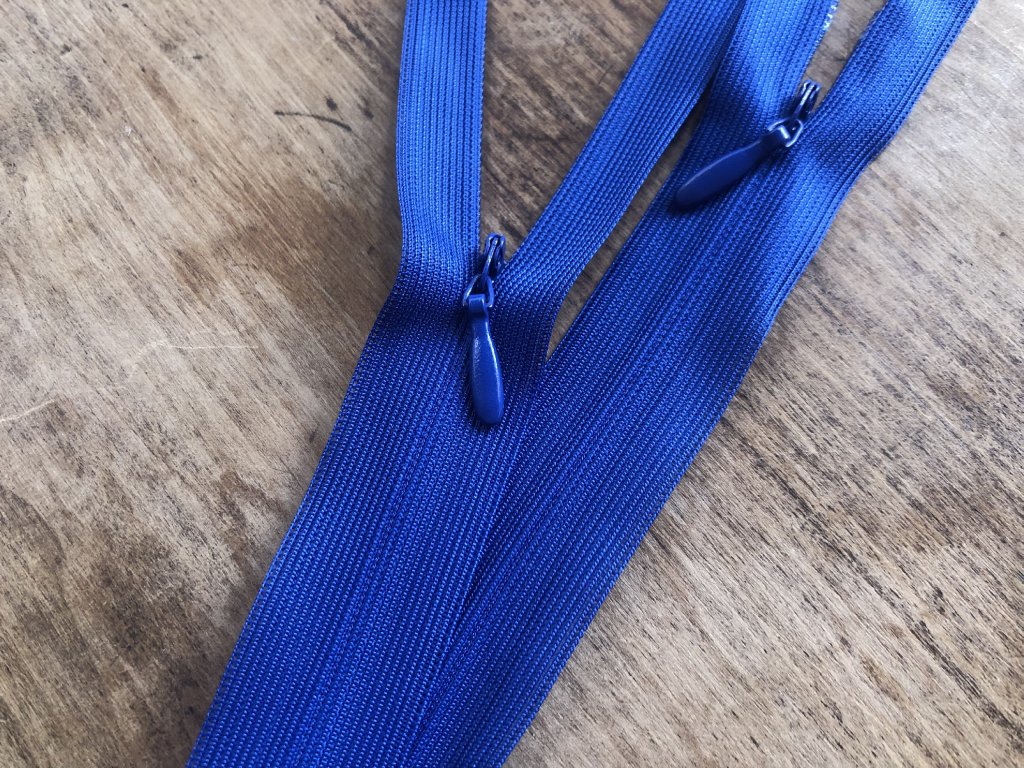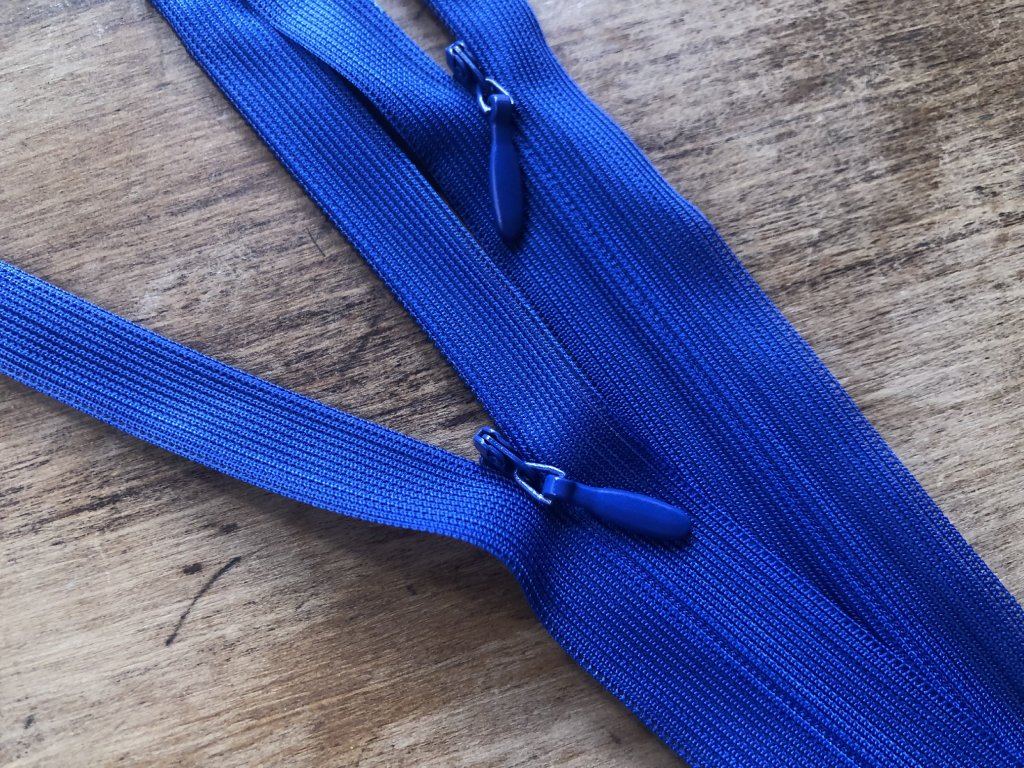 Výrazně modrý skrytý zip 22cm, 35cm, 50cm, 60cm